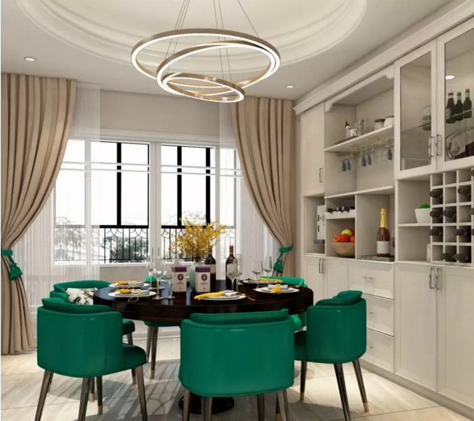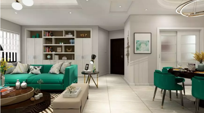 萬家樂全屋定制145㎡三室兩廳 現代簡約風格,用了比較流行的綠色為主色調,材質上使用了多種材質作為裝飾性材料。并搭配了一些跳躍的顏色增加室內的色彩。崇尚時尚、簡約、舒適,刪繁就簡,去偽存真,以色彩的高度凝練和造型的極度簡潔,在滿足功能需要的前提下,將空間、人及物進行合理精致的組合,用最洗練的筆觸,描繪出最豐富動人的空間效果。