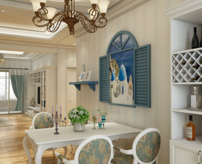 110m2地中海三居室,享受那明媚的光、清爽的風,遇見人生最美的地中海風情。地中海風格家具以其極具親和力、田園風情及柔和色調和組合搭配上的大氣,很快被地中海以外的大區域人群所接受。地中海風格的家具在選色上,它一般選擇直逼自然的柔和色彩,在組合設計上注意空間搭配,充分利用每一寸空間,且不顯局促、不失大氣,解放了開放式自由空間;集裝飾與應用于一體,在柜門等組合搭配上避免瑣碎,顯得大方、自然,其特有的羅馬柱般的裝飾線簡潔明快,流露出古老的文明。
