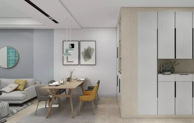 簡潔、現代,以淺色為代表,整體感舒適自然。小戶型的布局儲物放在首位。