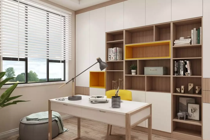 書房做一面墻的展柜,空間充分的被利用起來,收納、學習、游戲等需求都得到了滿足。