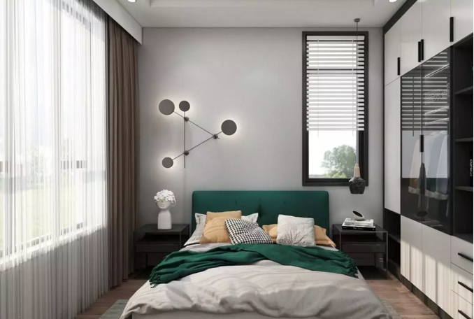 客臥的設計,在材質細節與自然氣韻的碰撞中折射生活的溫度,簡凈的背景墻,溫馨的壁燈、松軟的床品泛著柔暖的光澤,讓人身心舒適。