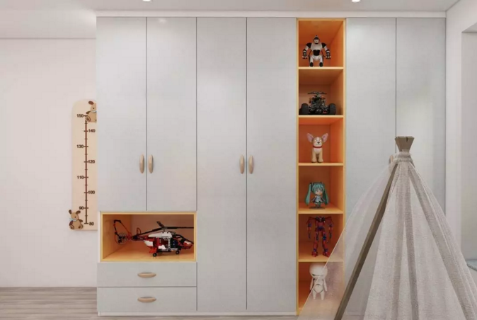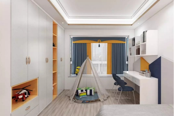 女孩活潑可愛,整個空間以淺色為主,選擇了極為活躍的橙色作為點綴,簡約卻不失童真。