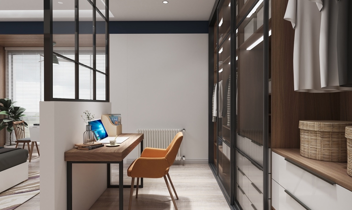 臥室隔斷衣帽間其實(shí)很簡單,他只需要一個(gè)推拉門,一面墻或者一個(gè)屏風(fēng),就能輕松的分隔出兩個(gè)空間,實(shí)用又不失美觀。