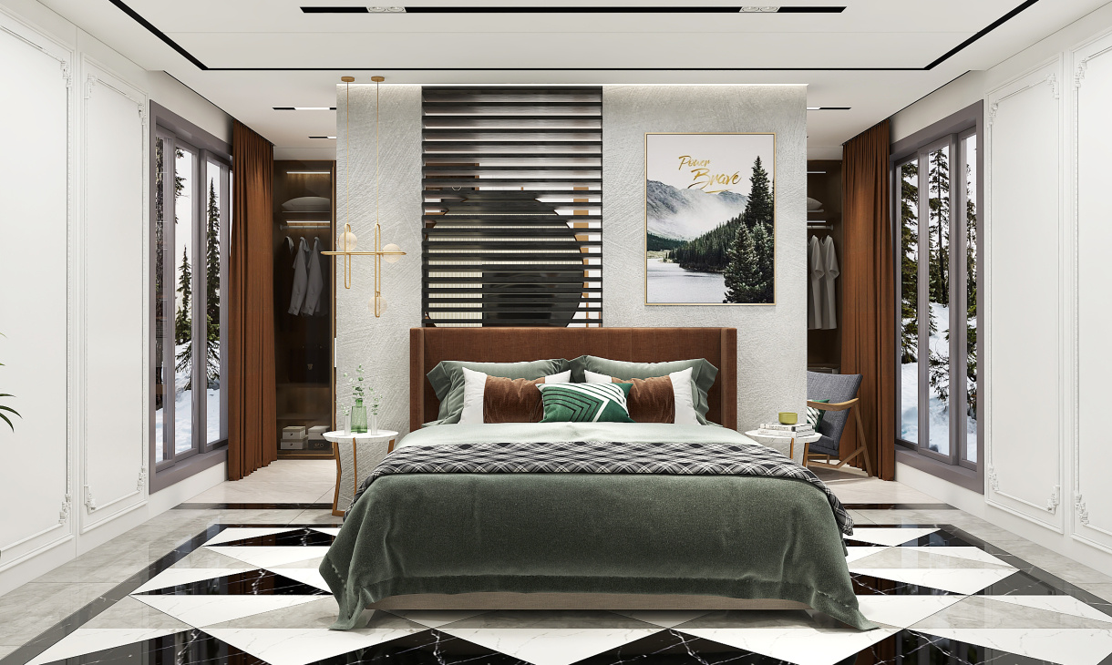 現(xiàn)代風(fēng)臥室設(shè)計(jì)風(fēng)格,整體干凈、利落,又不失時(shí)尚感。衣帽間與臥室連通,設(shè)計(jì)推拉門節(jié)省室內(nèi)空間,開放式與封閉式有機(jī)結(jié)合打破沉悶。搭配獨(dú)立得化妝區(qū)域,顯得自由奔放。
