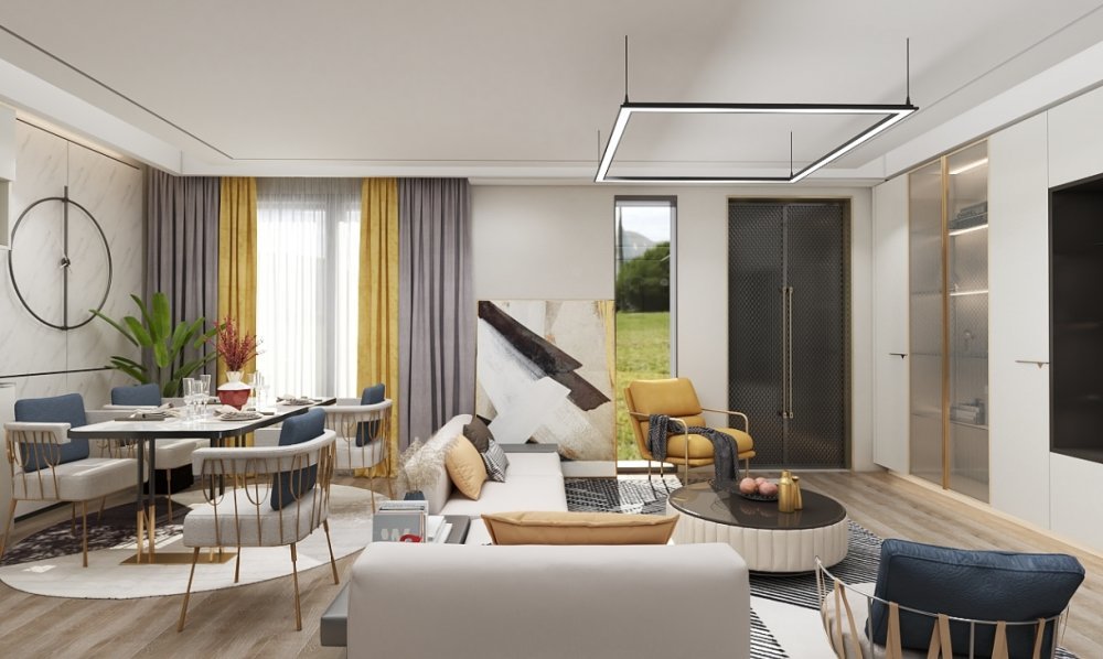 客餐廳于一體的設計既能展現空間層次感又非常實用深受人們喜愛,布藝沙發舒適不失格調,窗簾細節呼應,豐富空間的色彩。
