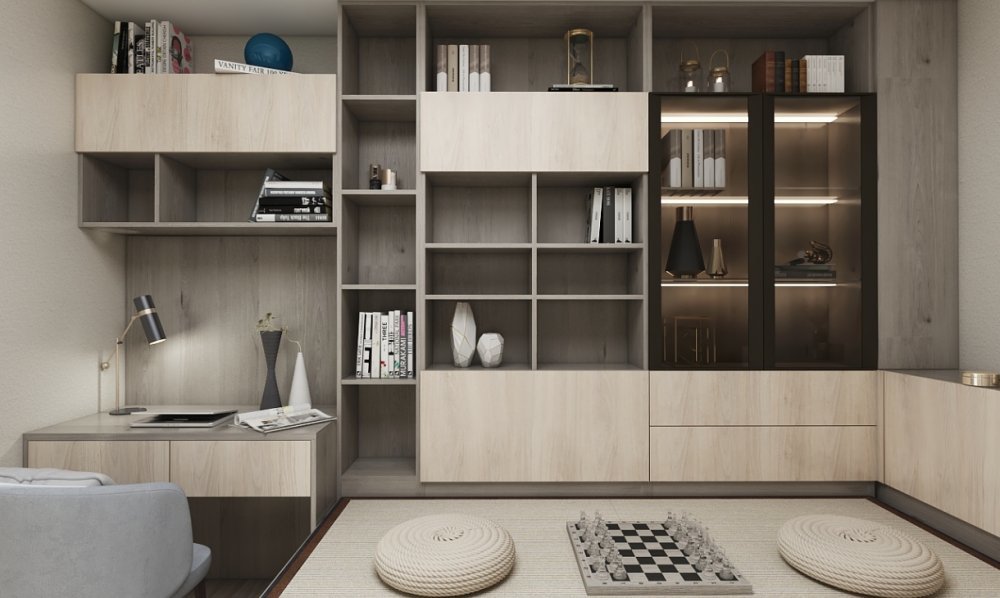 榻榻米房收納實用兩不誤,過季衣物和大件電器都能輕松收納,當做書房使用時,還能與朋友聊天下棋,是家居空間中不可或缺的設計。
