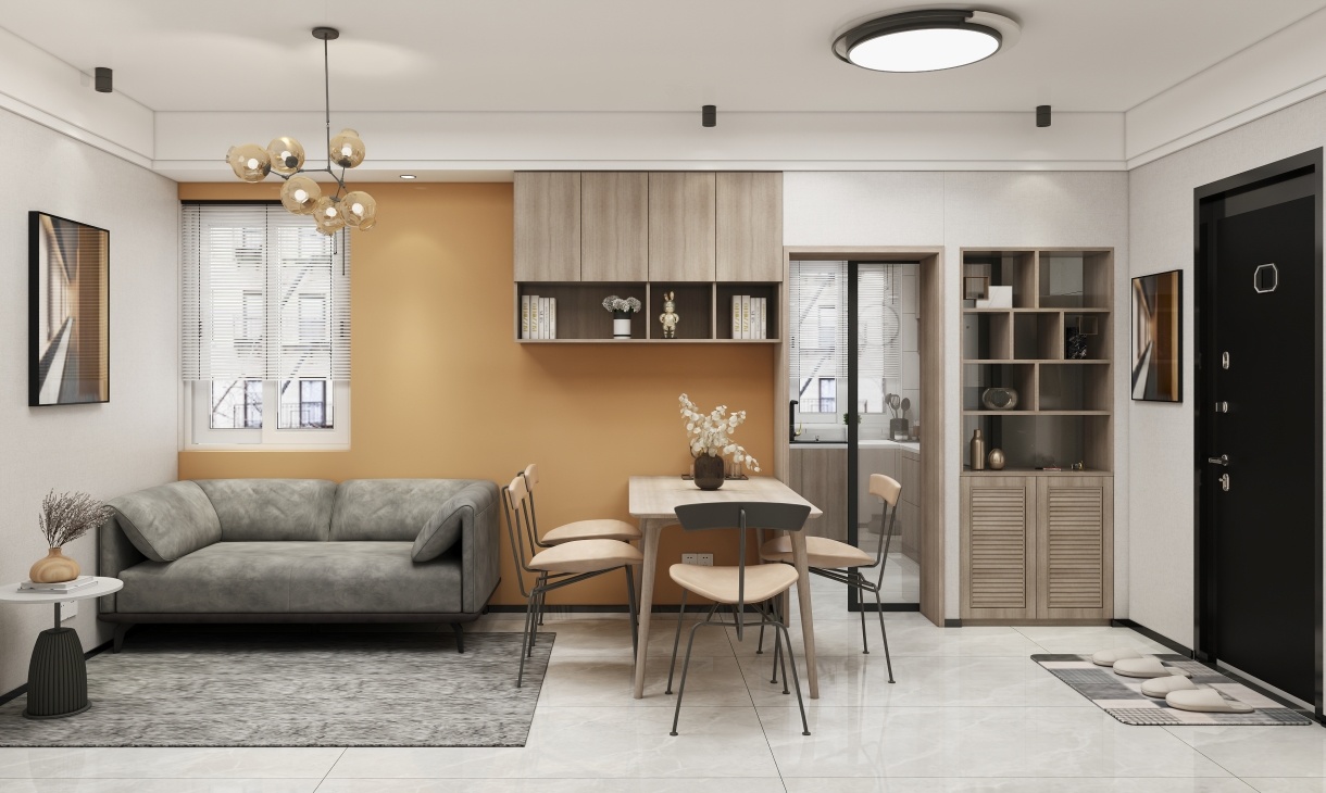 小技巧:最典型的客廳與餐廳空間,小戶型可以設計成客餐廳一體化,去掉隔斷,沙發背后設計成卡座餐椅,既節空間又美觀。