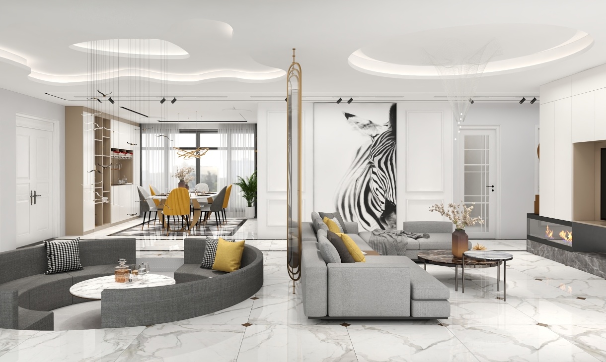 適度留白的表現手法不只是是大戶型的專屬,小戶型空間小過度分區,會讓空間更加狹窄居住感差。