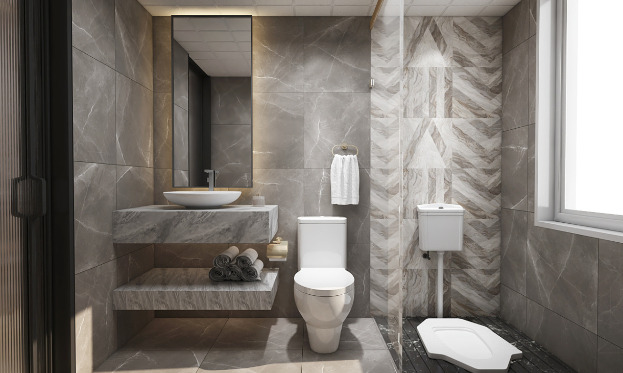 為了滿足不同需求,衛生間設計更全面,石英石的臺面清潔簡單又美觀。