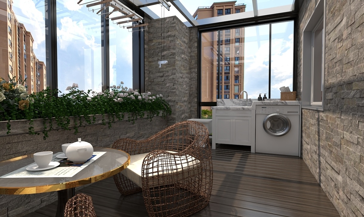 將陽臺設計開放式,轉角空間設計成實用區,中間設計休閑區盡顯舒適生活。