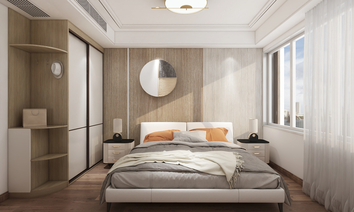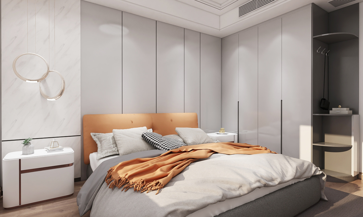 客臥的設計主要以簡潔為主,到頂衣柜設計成推拉柜門節省空間使用又方便。