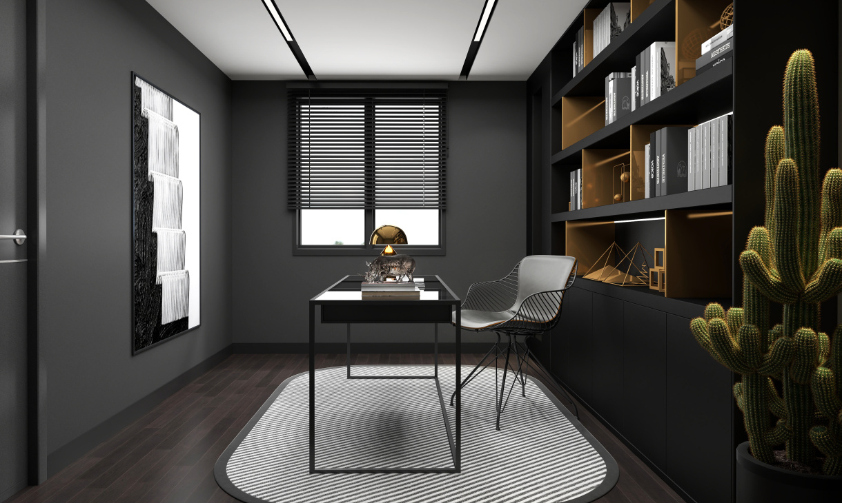 書房一側做了到頂高柜,美觀大氣的同時滿足了書籍的收納需求。
