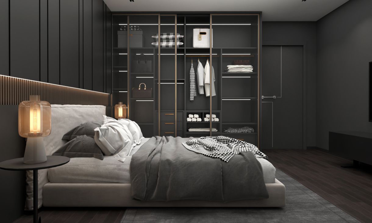 到頂衣柜主要以玻璃柜門為主,通透與時尚并存。