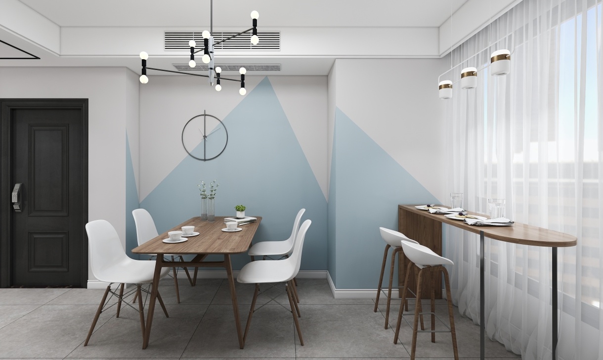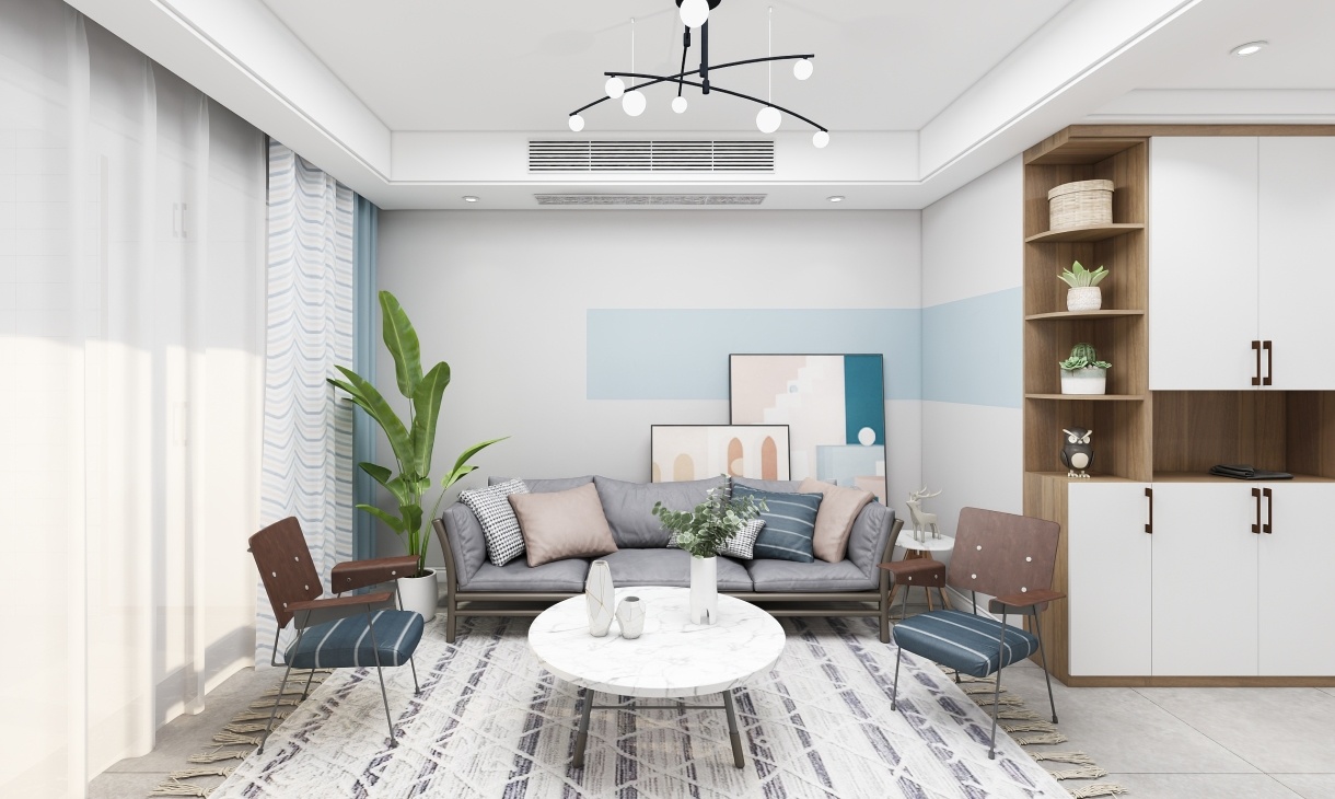 一個(gè)溫馨的家自然少不了舒適有品位的客廳了,白色與藍(lán)色墻面裝飾搭配木質(zhì)家具,營造出干凈的客廳空間。