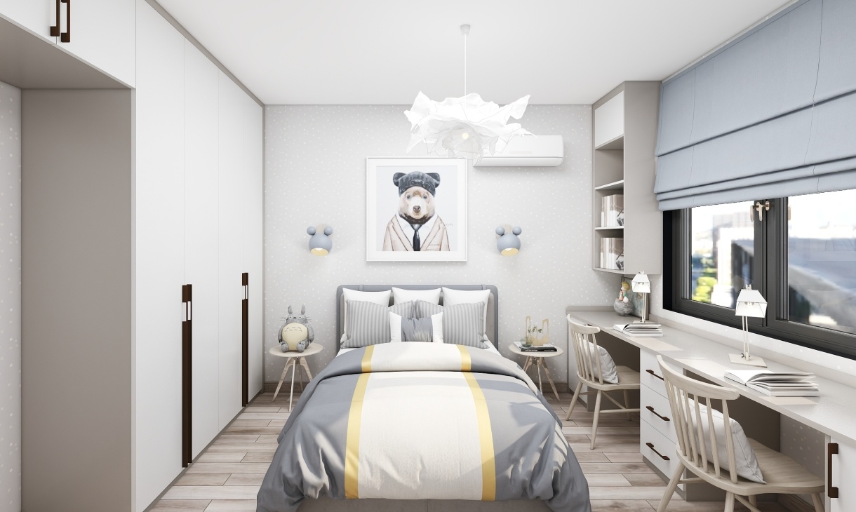 為了滿足孩子成長需求,將兒童房設計成學習性強的空間,也可以當做書房來使用,為滿足居住者的生活習慣量身打造。