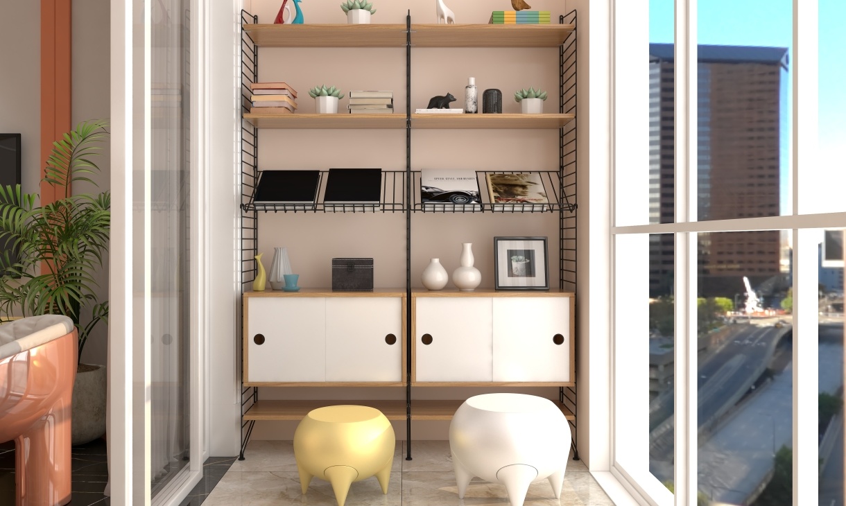設(shè)計陽臺柜收納裝飾兩不誤,書籍是家的文化展現(xiàn),小盆景讓生活更有情調(diào)。