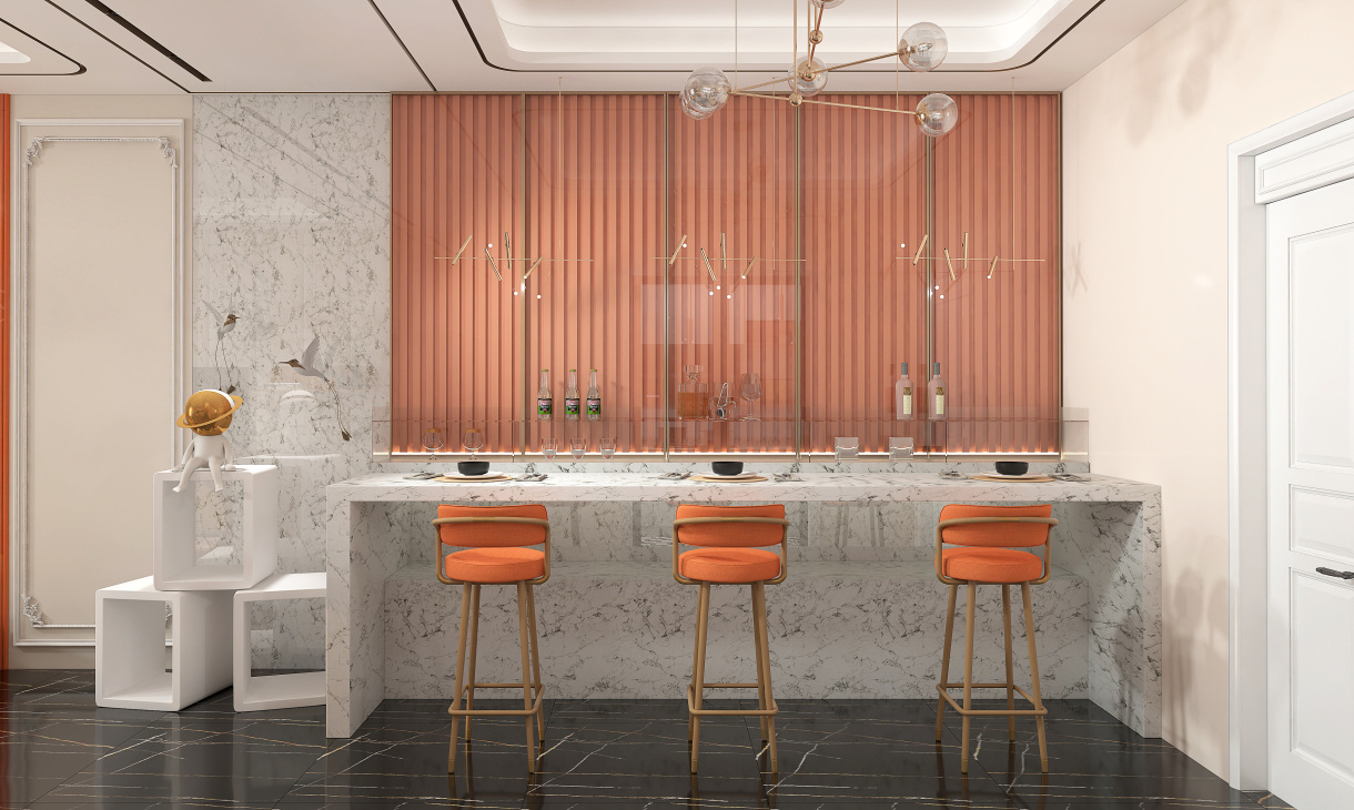 將餐廳設(shè)計吧臺形式,更具有現(xiàn)代時尚感。