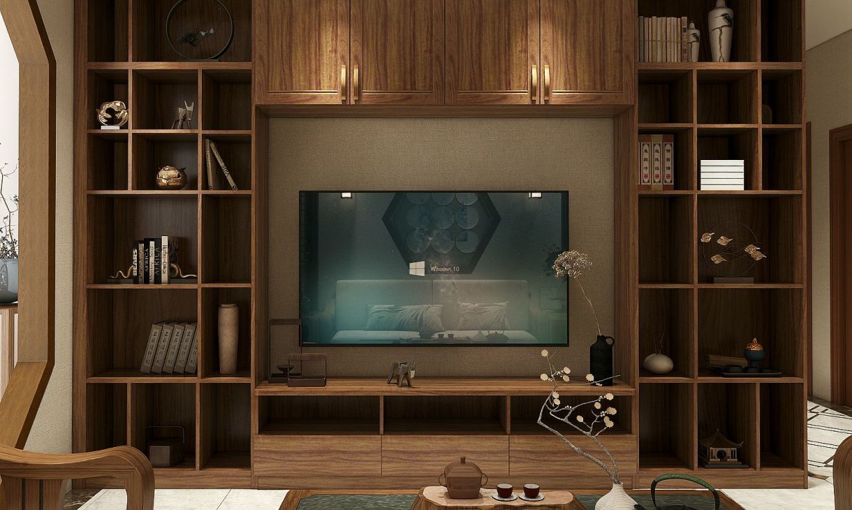 客廳電視柜都采用拼框式門板設計,功能多樣、樣式復古有韻味。