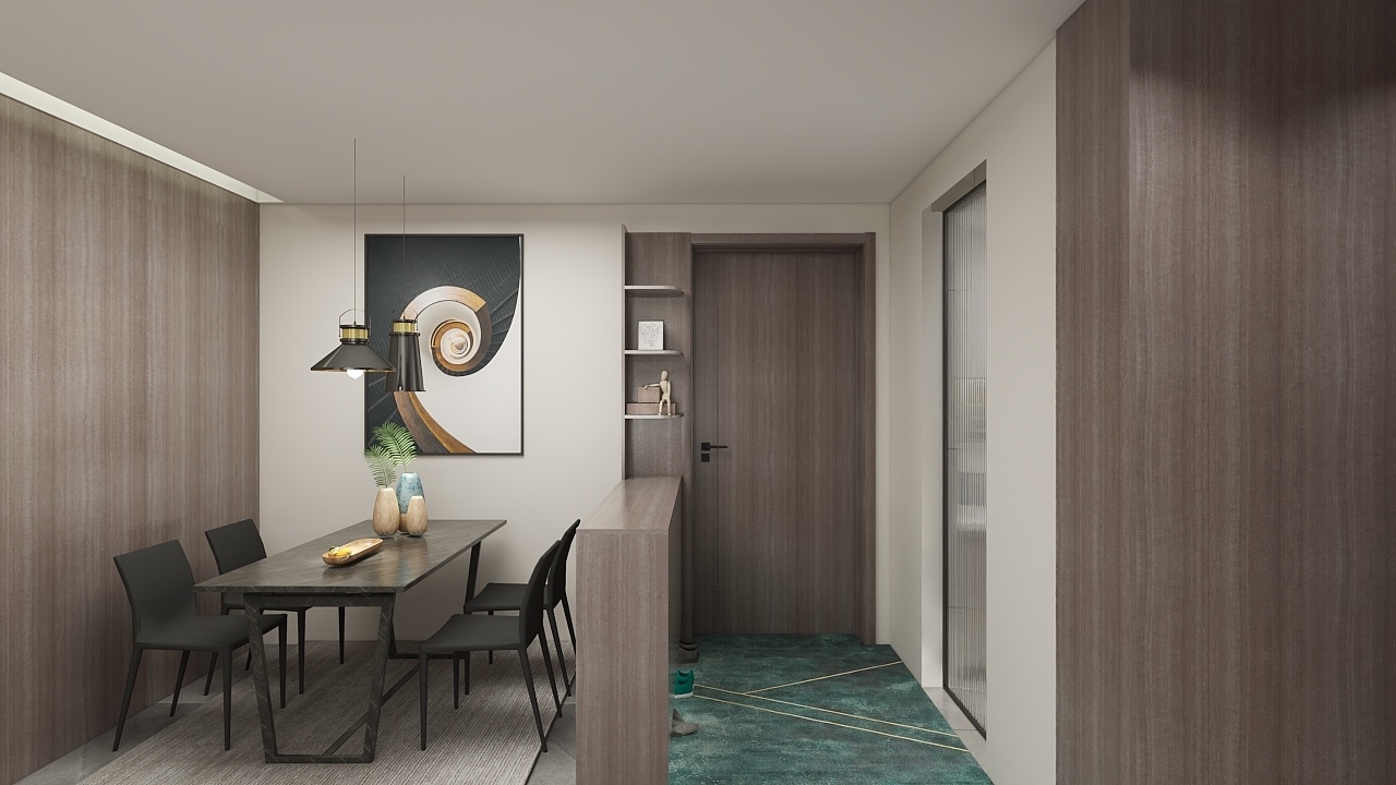 玄關柜在這里又能充當一個隔斷的作用,將玄關與餐廳一分為二,在不影響室內光線的情況下,還能擁有一個溫馨的就餐空間。