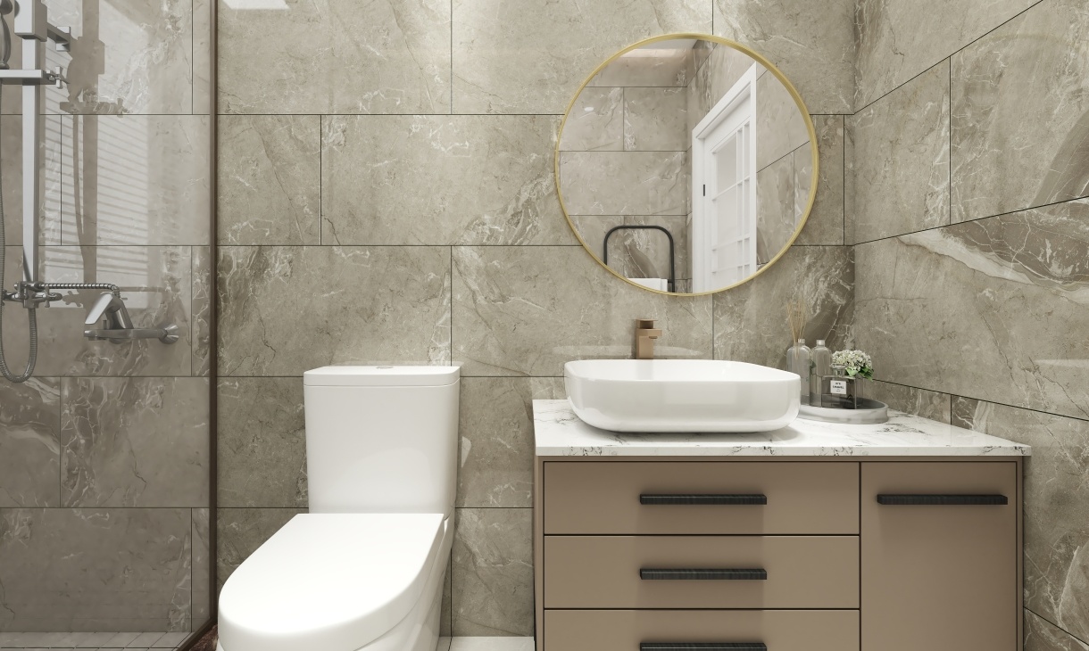 大理石紋理瓷磚貼面帶給空間濃重的輕奢感,格調(diào)立馬提高。干濕分離讓整個空間動線合理,簡約實用。