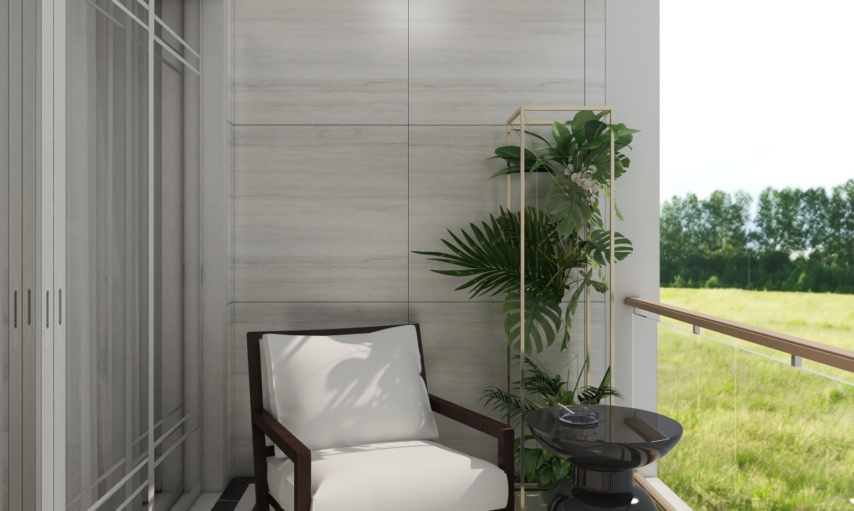 綠植是陽臺不可或缺的風(fēng)景線,擺上躺椅,觀看悠閑好風(fēng)光。