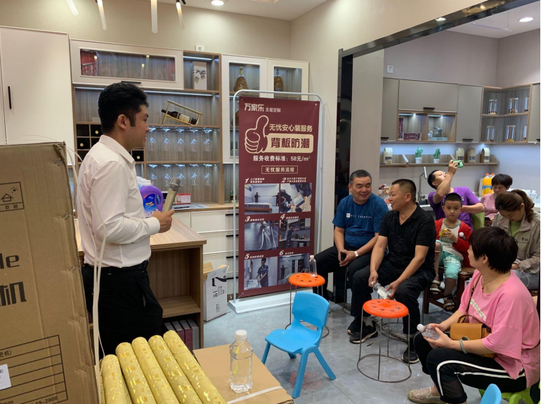 針對終端客戶的痛點,萬家樂全屋定制市場中心團隊積極研究對策,并在行業中首創“背板防潮”服務,為終端開拓出一條“差異化服務競爭”的新思路,將競爭從趨于同質化的“材質競爭”和“設計競爭”轉移到真正能體現終端價值的“服務競爭”上來;切實為客戶解決難點的“背板防潮”服務通過了市場的檢驗,同時也讓客戶對萬家樂的服務有了新的認知,幫助門店建立了真正的差異化優勢;