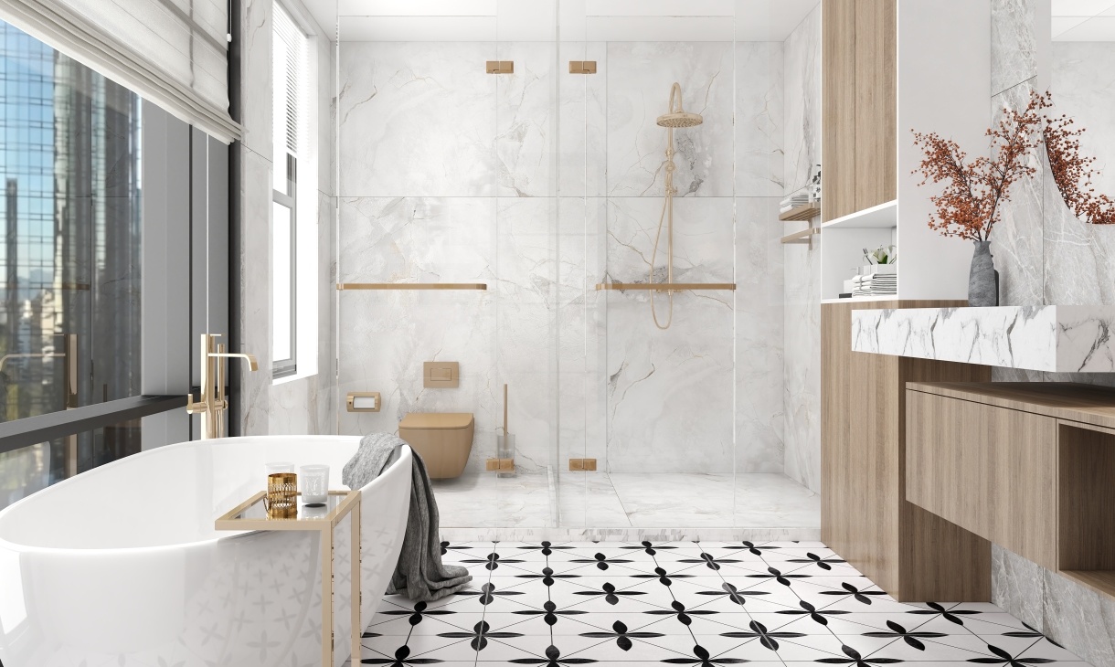 衛生間的設計既實現了干濕分離,又能體現居住者的精致需求。忙碌了一天,用浴缸去除一身的疲勞,生活才更加安逸。