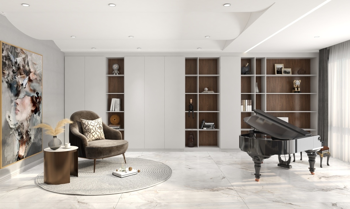 書房不只是收納書籍擺放雜物的空間,而是高品質生活的象征,書房空間沒有繁瑣的修飾,更顯得簡約大氣。