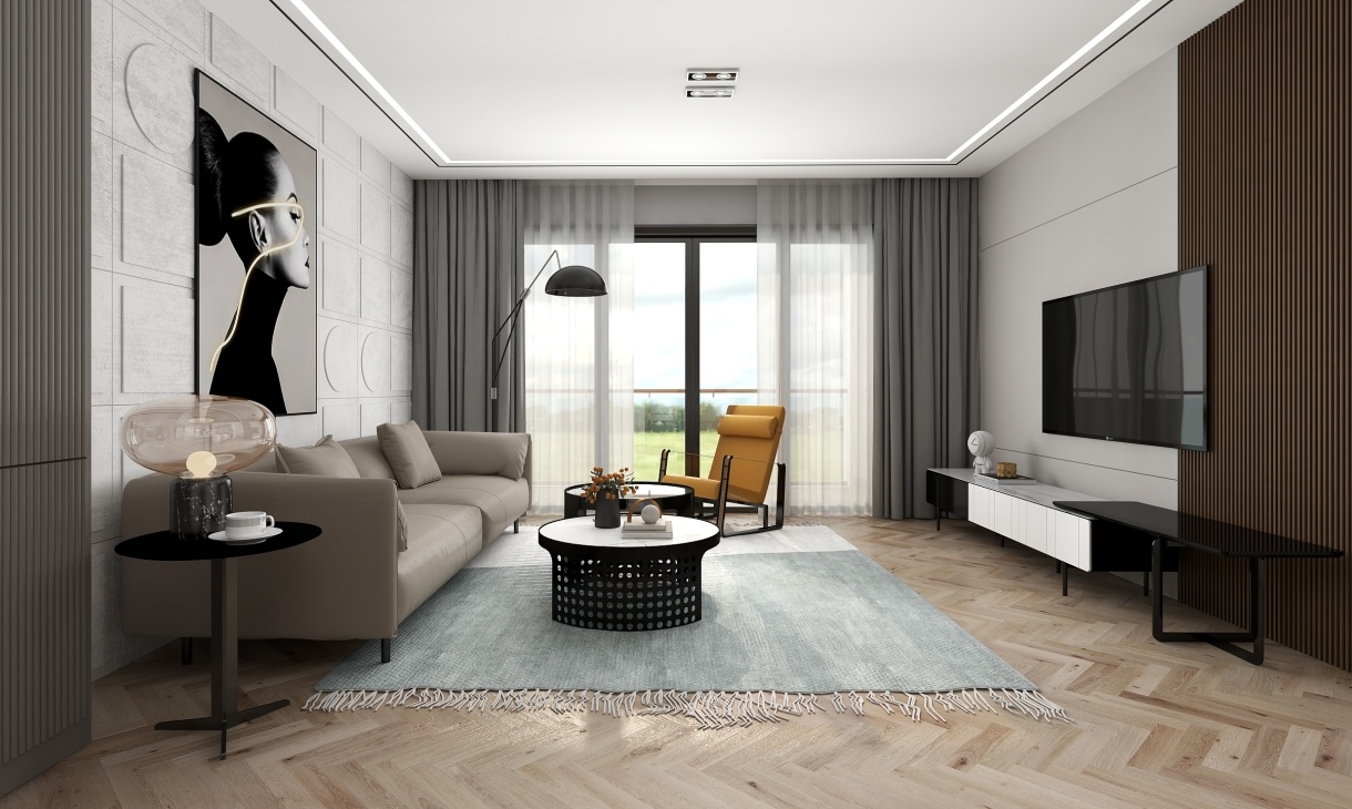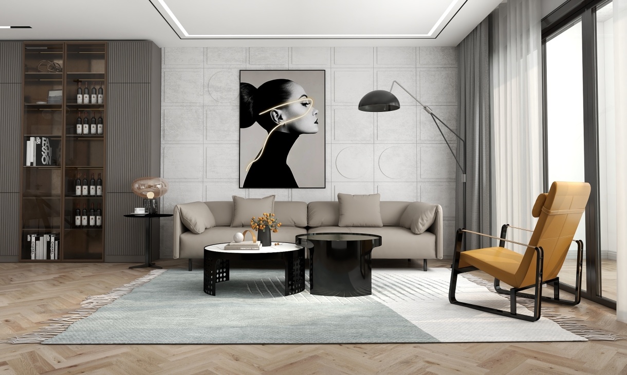 整體空間以黑白灰為基調,搭配玻璃與時尚金屬材質,打造舒適、自然、而不失雅致的的空間氛圍,回歸生活的本質。
