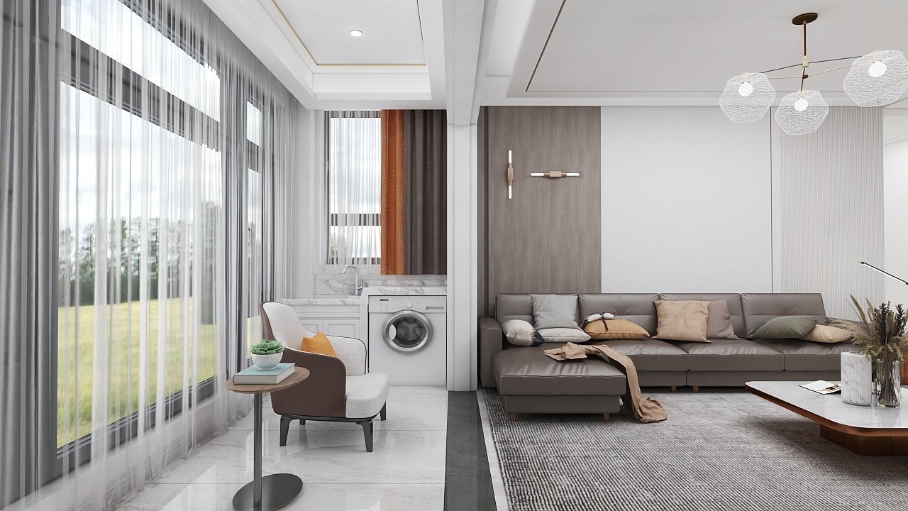 陽臺是整個客廳光線充足的地方,采設計成休閑實用區,高茶幾搭配休閑椅盡顯生活品位,實用區簡潔大氣,空間層次感十足。