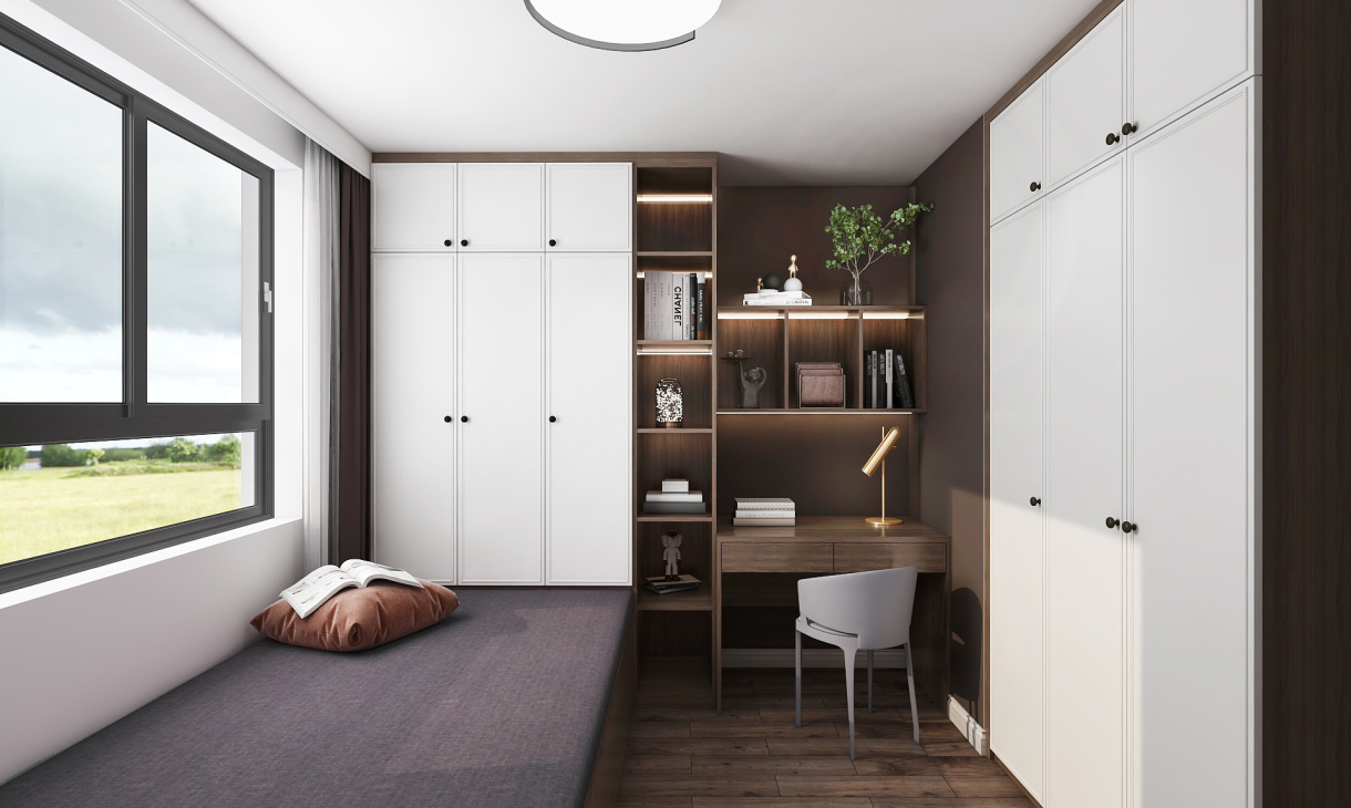 榻榻米房既可以當(dāng)做兒童房、書房使用,大面積收納減輕了空間的收納壓力,白色與原木色的搭配,簡潔大氣盡顯空間實(shí)用性。