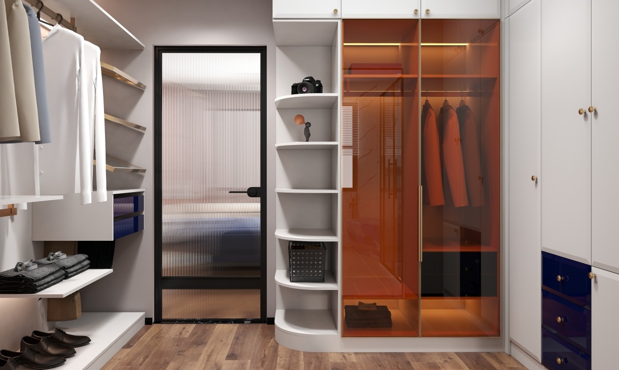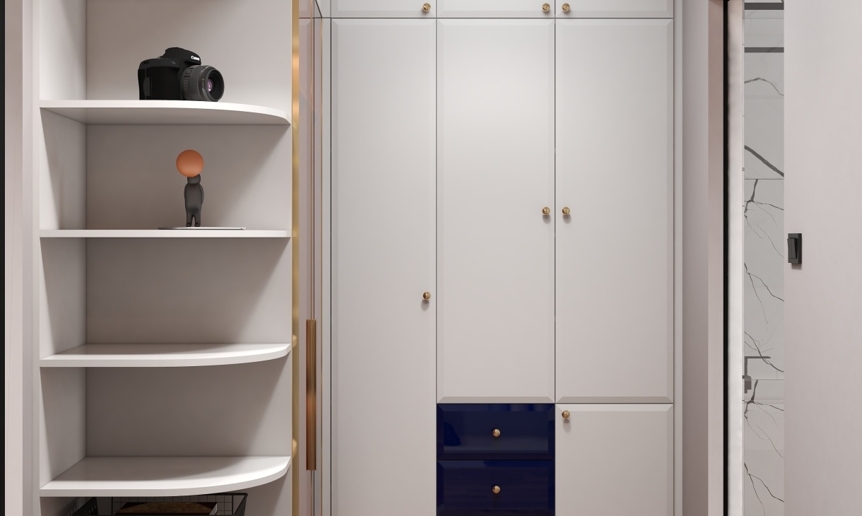 衣帽間設計超多衣柜,展示收納于一體,使用方便又美觀,衣柜設計以開放式為主,不顯壓抑又實用。