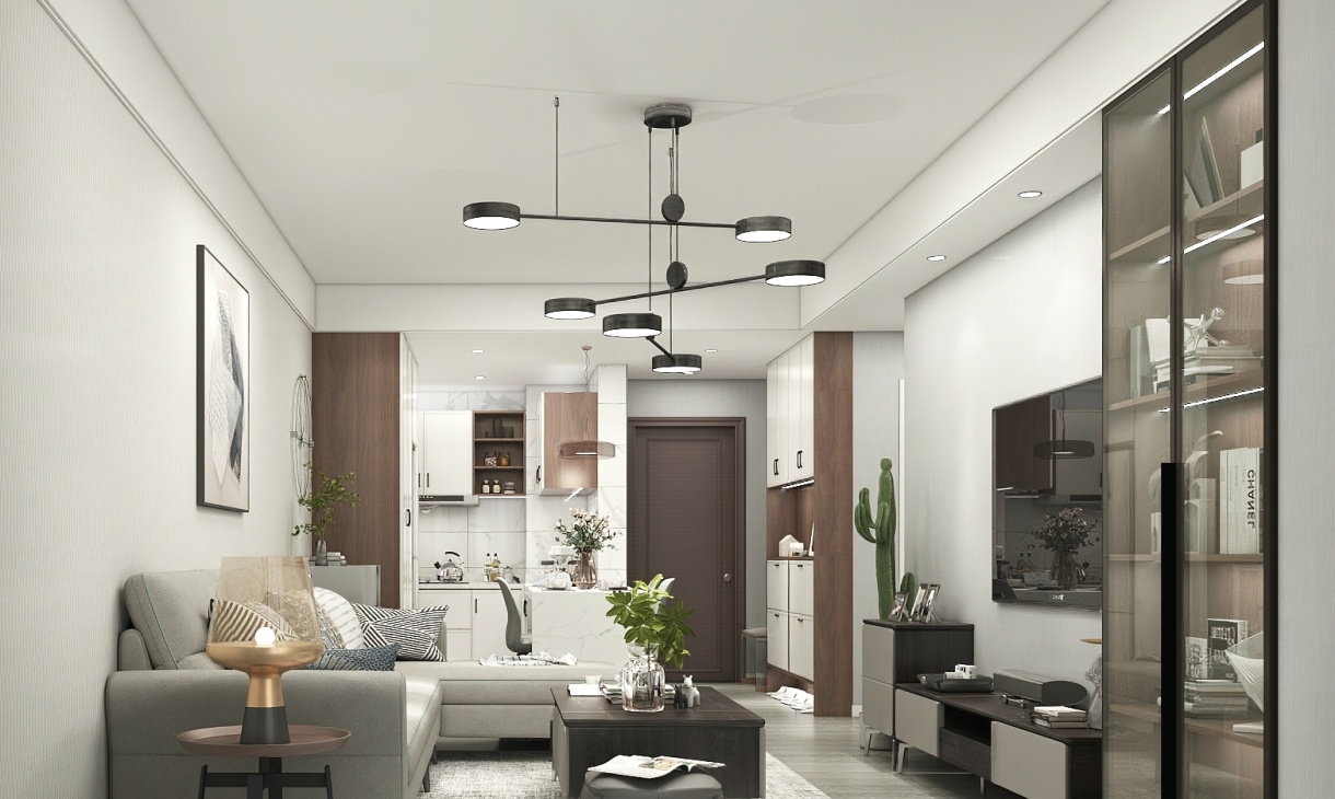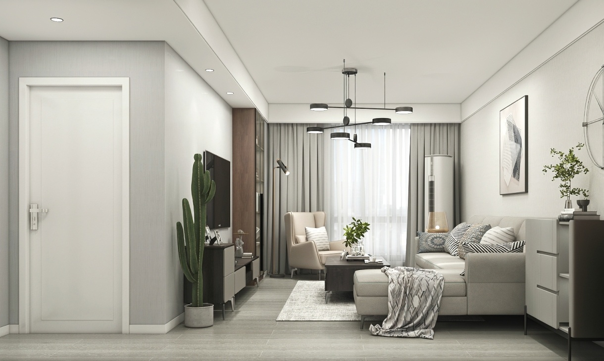 客廳空間不大,顏色素凈但裝修并不單調(diào),米白色調(diào)搭配淺色木質(zhì)地板,加上豐富綠植點綴,溫馨實用。