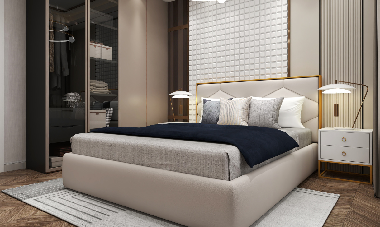 到頂的衣柜滿足次臥的收納需求,柔軟的床品營造出舒適又溫馨的家居空間,生活的品位在細節之處完美展現。