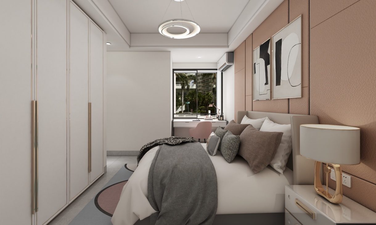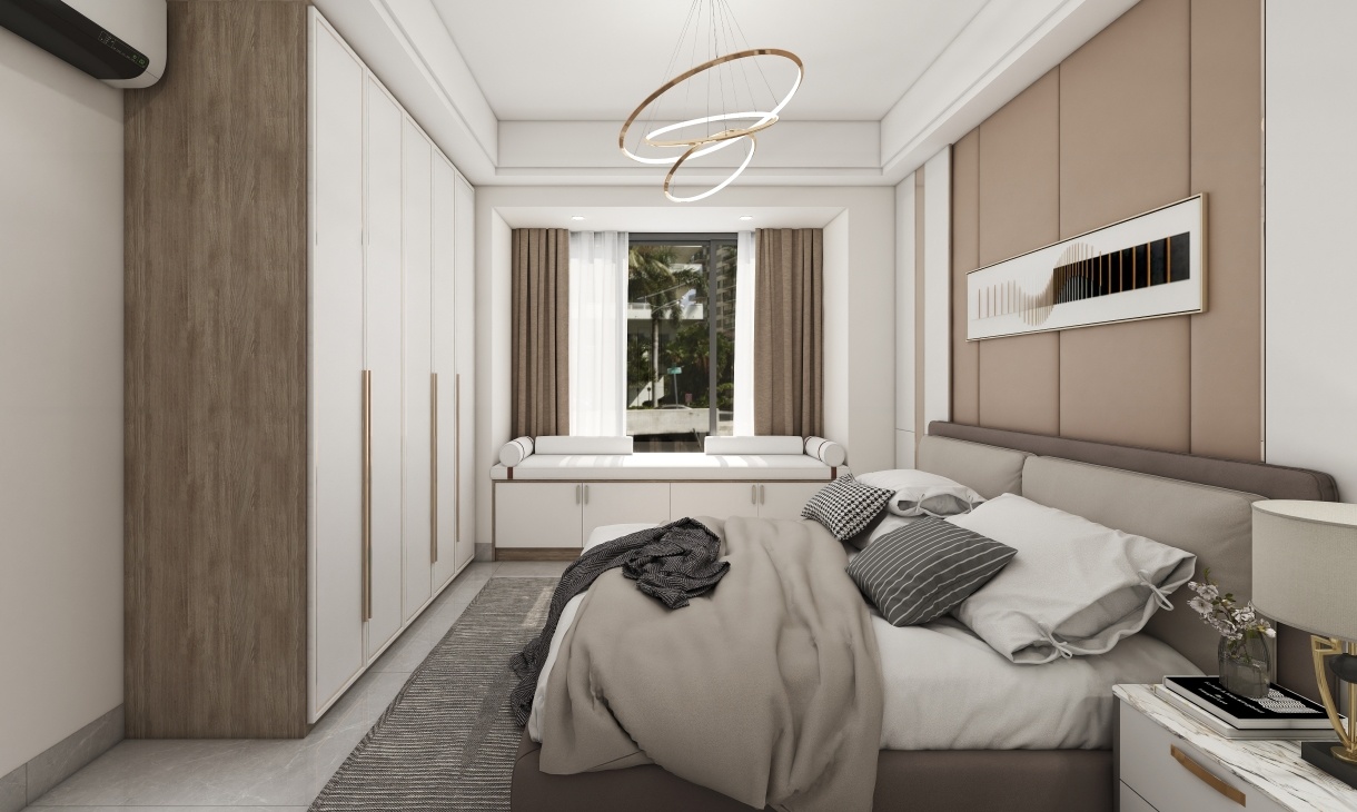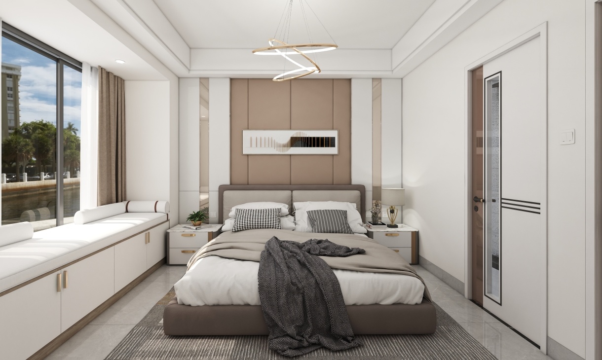 一進主臥就能感受到精致舒適之感,飄窗底部做收納,上面設置成休閑區,讓生活更加有品位。
