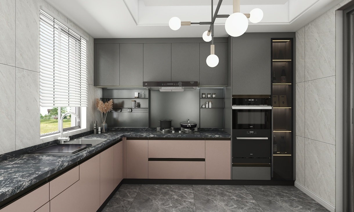 廚房承載著家的幸福感,一個使用一個有品位的廚房能讓這個家變得更加溫馨,上深向淺的櫥柜設計非常有質感,深色的石英石臺使用好清理。