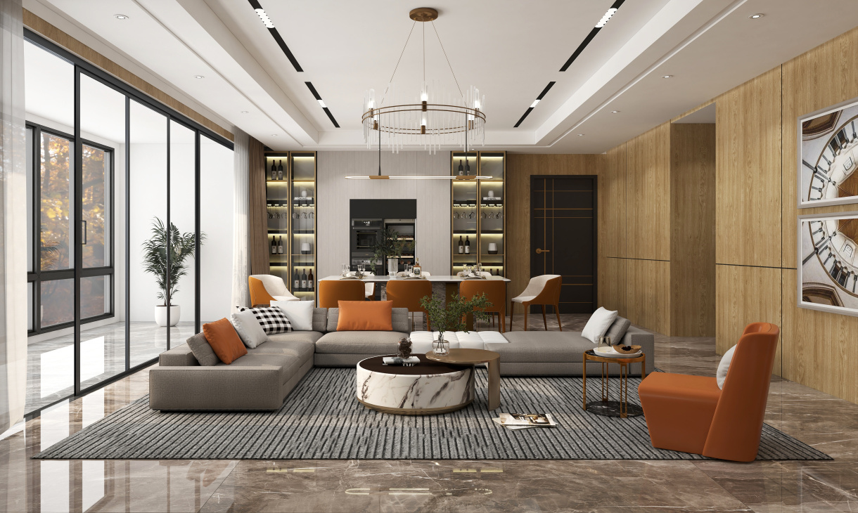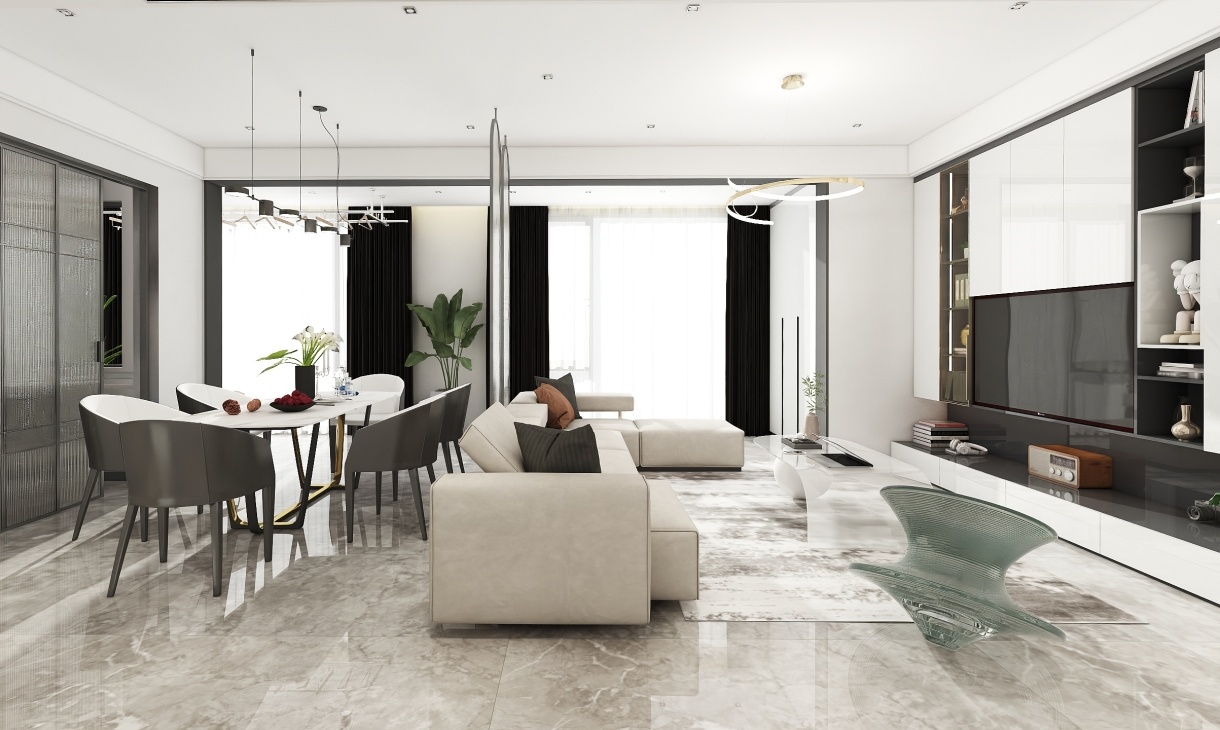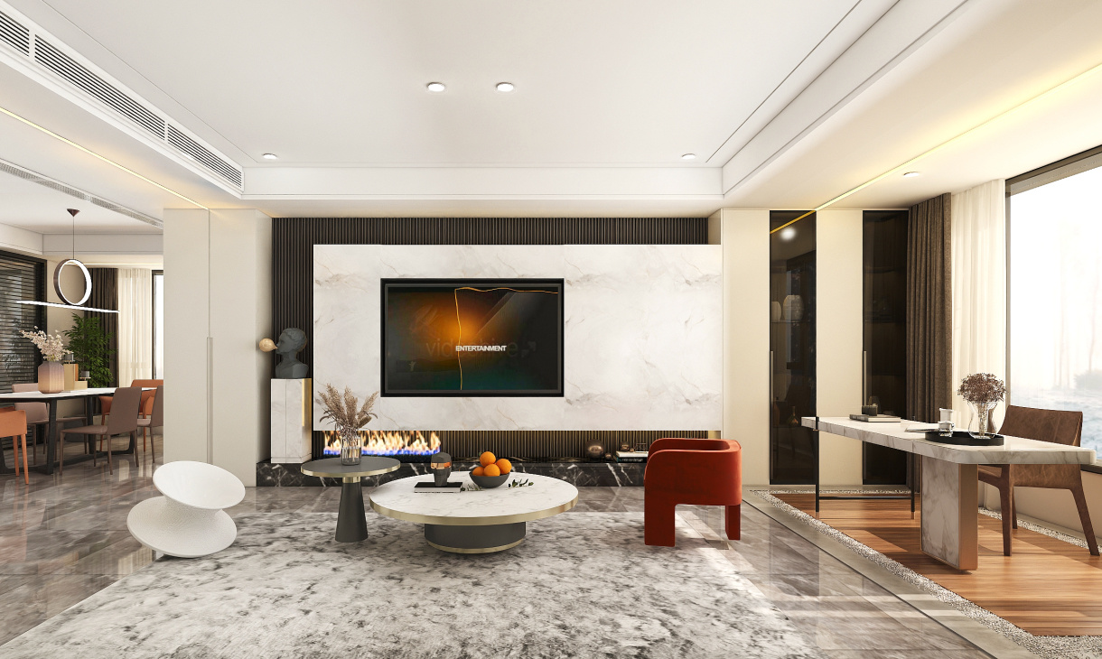 客餐廳空間大,可以適當居中設計,更好的實現人員流通,這樣的設計既具實用性,又讓整個空間看起來大氣且設計感十足。