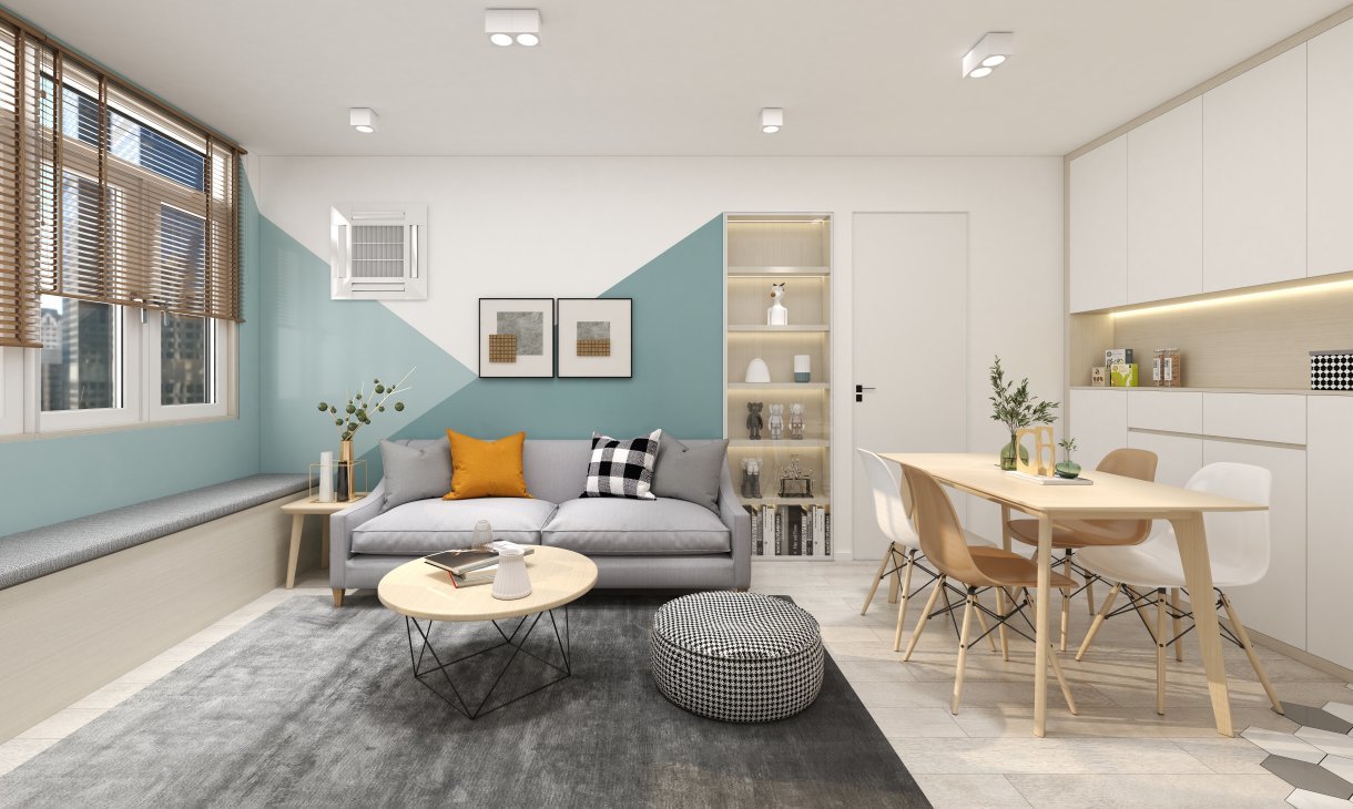 最常見的一體化設計,就是在沙發背后設計餐廳空間,最大程度上利用空間,營造出實用性強又實用的客餐廳空間。