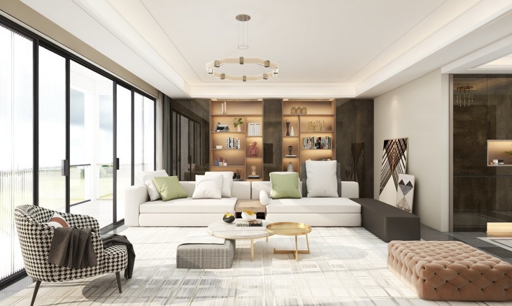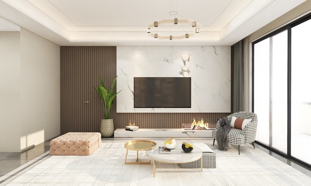 這套方案,將舒適與簡(jiǎn)潔展現(xiàn)的淋漓盡致,木質(zhì)背景墻與大理石搭配簡(jiǎn)潔不顯單調(diào),沙發(fā)與茶幾的擺設(shè)采用適度留白的表現(xiàn)手法,提升空間品位。