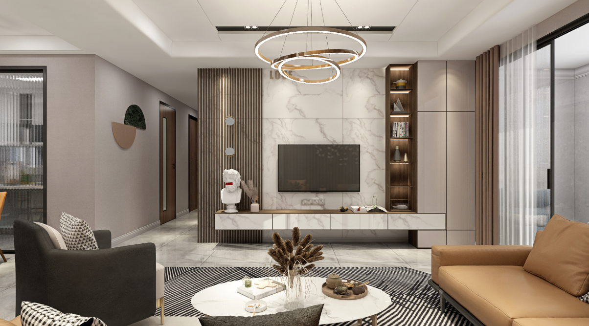電視柜的設計可以根據自己的需求,定制不同的功能區。藏露有致,豐富儲蓄功能,同時讓整體空間擁有靈動活躍和層次分明的感覺,避免壓抑。