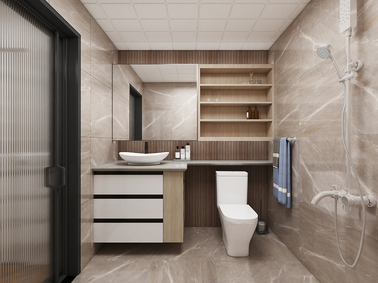 要想浴室顯得整潔清爽,最簡單的辦法就是減少視線內的物品量,讓物品藏起來。為了使用便利,浴室柜設計時建議選擇具有一定比例的開放隔板。