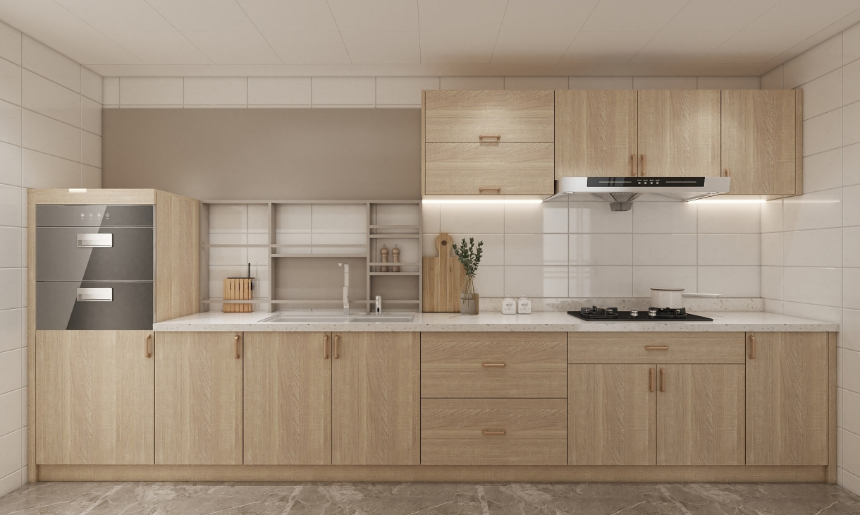整體櫥柜的必要性已經在日常生活中充分顯現,高矮柜、抽屜、拉籃等等組合定制,完美搭配,減少廚房的凌亂感。