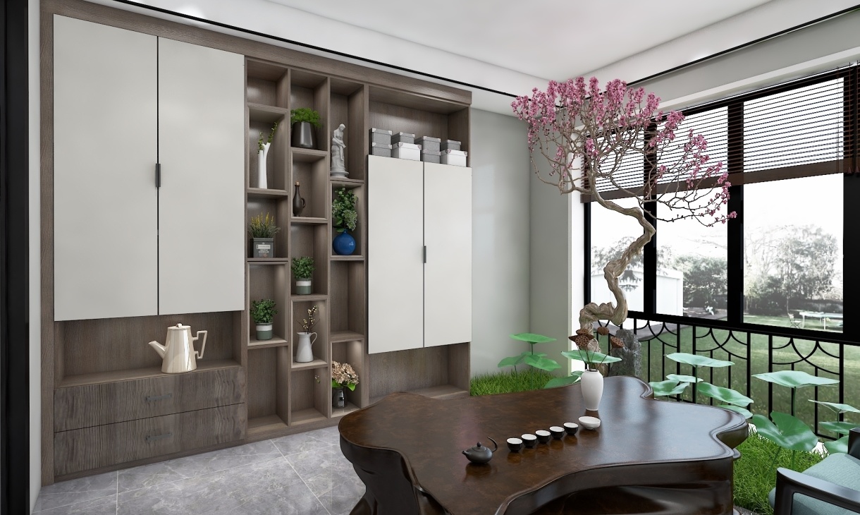 文化的經(jīng)過時間的長河而沉淀下來的精華,在當代科技發(fā)達的今天,大多數(shù)年輕人總是心浮氣躁的,一個安靜的空間格外難得。陽臺本應(yīng)該是方寸之地,在本設(shè)計方案里,一眼望去便被這份雅靜吸引了目光,質(zhì)樸精致的裝飾柜,與窗戶邊的景色成為一幅絕美畫卷,看著如此美景,沏一壺清茶,靜度余時,感受心在此暢游。