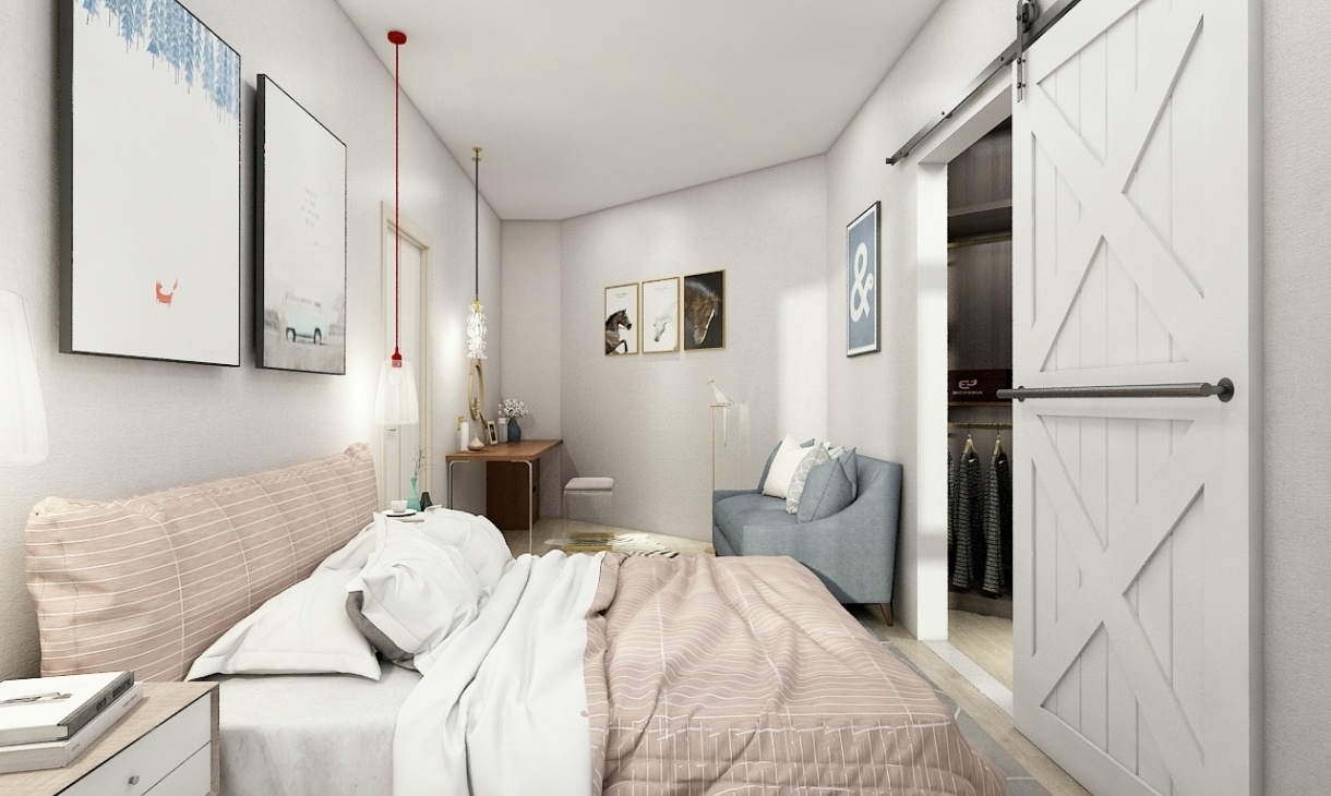 簡(jiǎn)單是這個(gè)兒童房的表象,舒適才是靈魂,布藝沙發(fā)和書桌完美利于異型空間,定制沙發(fā)的加入使得空間更加溫馨,整個(gè)空間即簡(jiǎn)單也很溫馨,將原本的衣柜設(shè)計(jì)成臥室外的衣帽間,推拉門節(jié)省空間的同時(shí)又很實(shí)用。