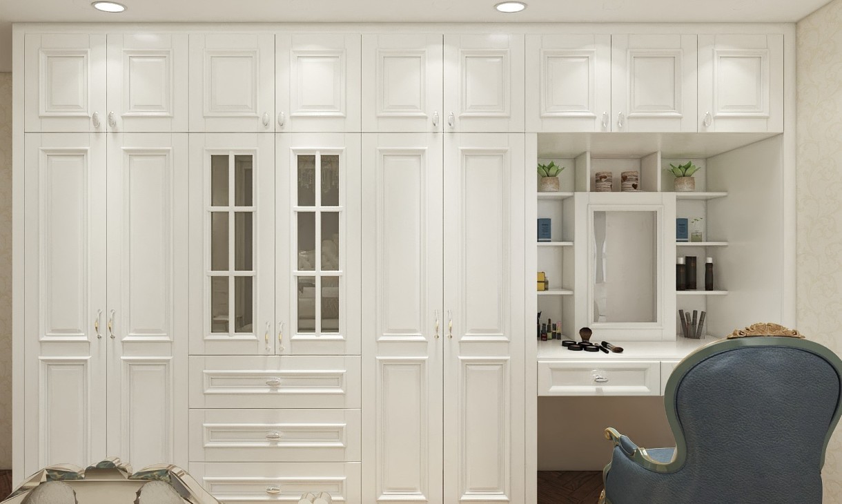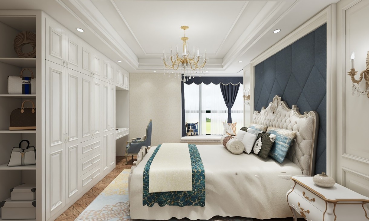歐式定制家居具有華麗、高雅之感,素凈的白色模壓衣柜仿佛是精心雕刻的藝術(shù)品一般,將臥室空間打造成豪華與優(yōu)雅兼?zhèn)涞目臻g。精致的水晶吊燈搭配絢麗多彩的裝飾物,將歐式浪漫融入生活。