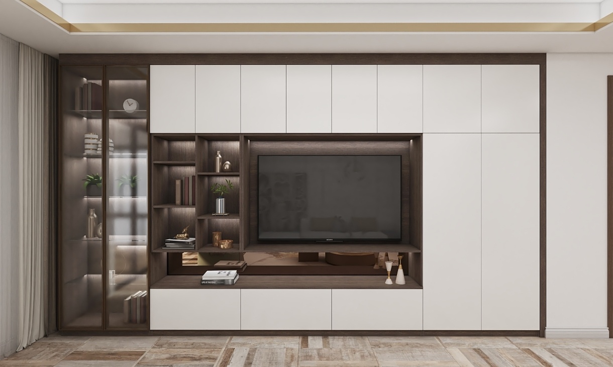 回字形電視柜滿足客廳的收納需求,陽臺打通客廳設(shè)計(jì)裝飾柜,玻璃材質(zhì)彰顯時(shí)尚,提升客廳的格調(diào)。