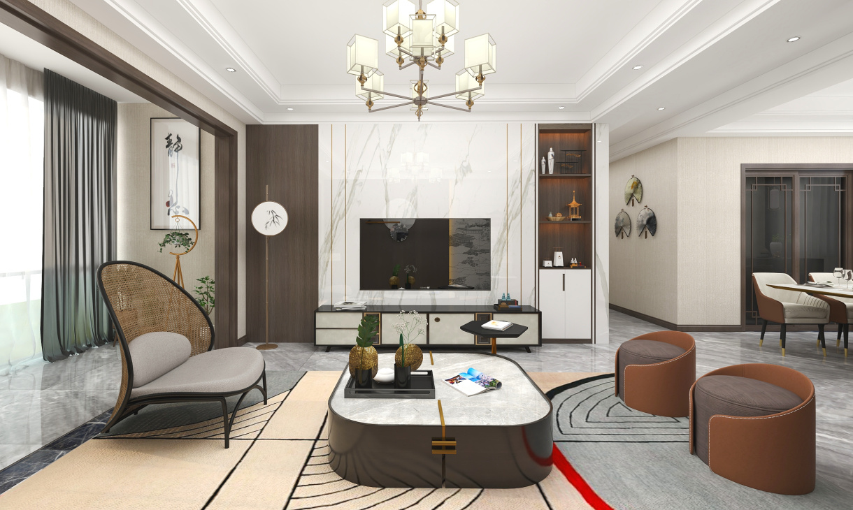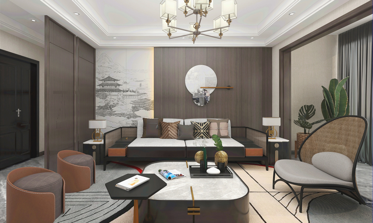 木紋的茶幾與休閑椅擺在客廳c位,給中式客廳增加清新自然的氣息,從而營造出慵懶愜意的生活氛圍。