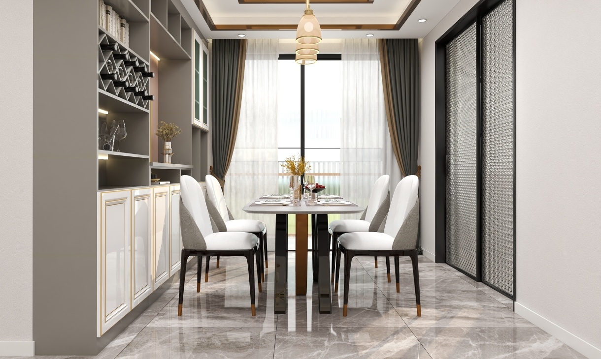 巨大的落地窗將光線引入,讓空間灑滿溫暖的陽光,使得空間氛圍更加溫馨舒適,同時可以更好的欣賞窗外的風景。