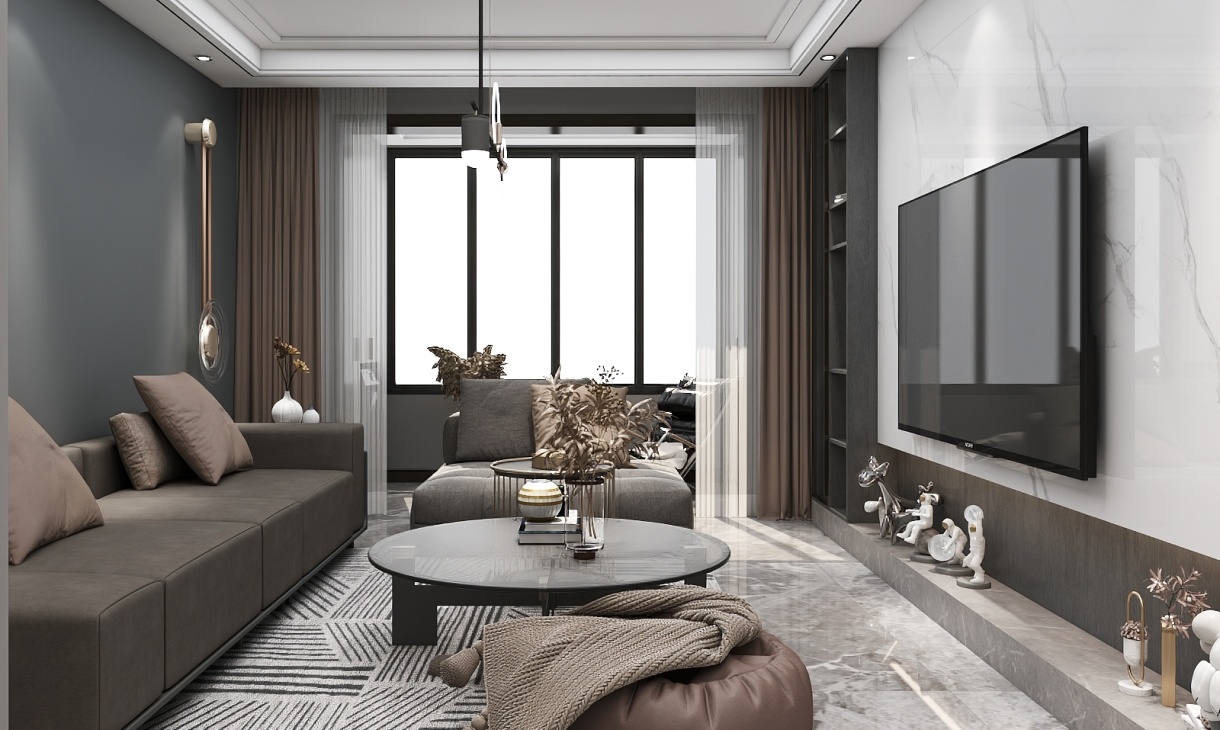 客廳裝修想簡(jiǎn)單又時(shí)尚,質(zhì)感灰少不了,棕色抱枕搭配灰色沙發(fā),能給人沉穩(wěn)大氣之感,大理石與灰色木質(zhì)板材電視柜的組合,將"現(xiàn)代"的美感完美展現(xiàn)。
