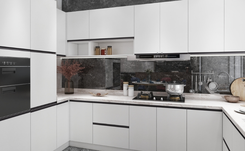 櫥柜上的隱形燈帶,全方面的估計(jì)到人到生活習(xí)慣,充分利用空間,角落的各種櫥滿足不同物品的收納需求,玻璃門(mén)在視覺(jué)上提升通透性,色彩上也形成統(tǒng)一,使得空間環(huán)境更加舒適。